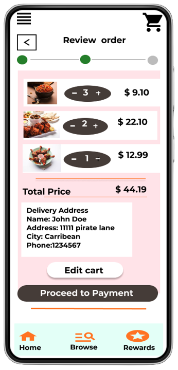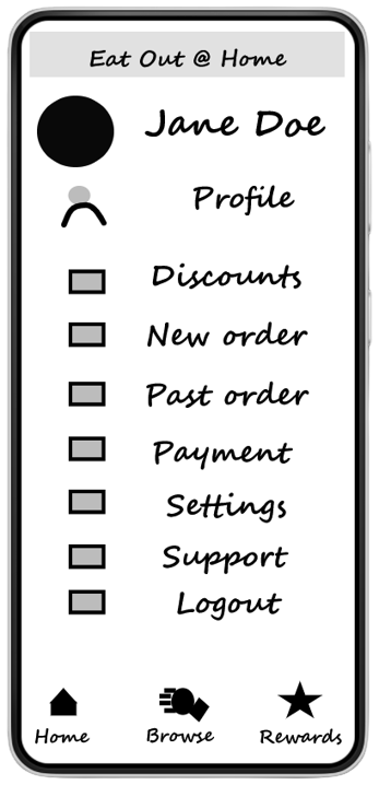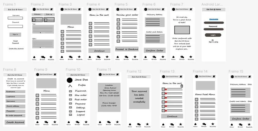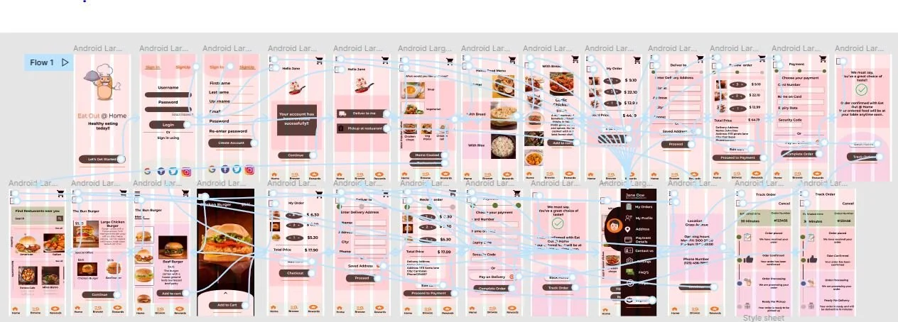 Using the completed set of digital wireframes, I created a low-fidelity prototype. The primary user flow I connected with was, creating and ordering food from home-cooked menus and restaurants, so the prototype could be used in a usability study.
