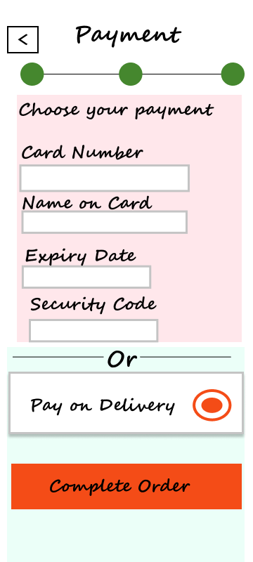 Taking the time to draft iterations for each screen of the app on paper ensured that the elements that made it to digital wireframes would be well-suited to address user pain points. For the home screen, I prioritized a quick and easy ordering process to help users save time.