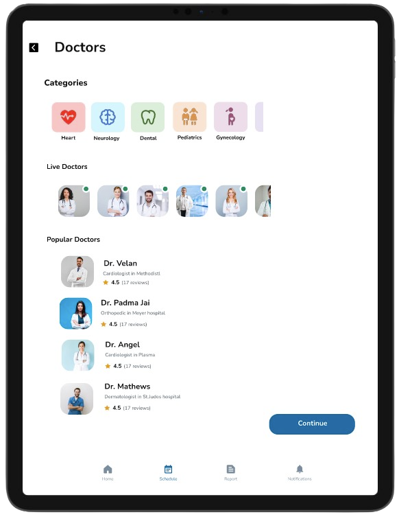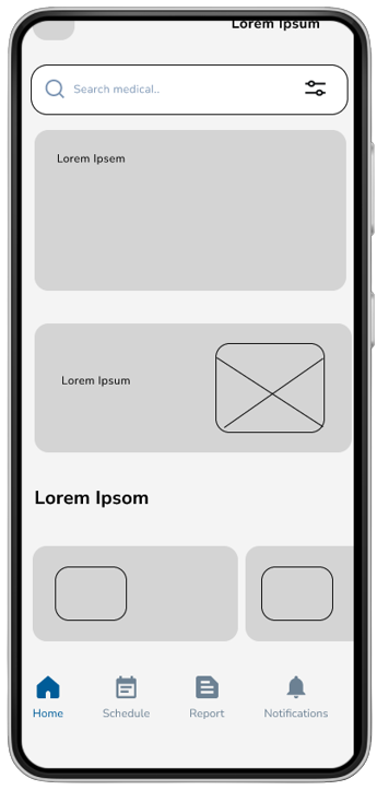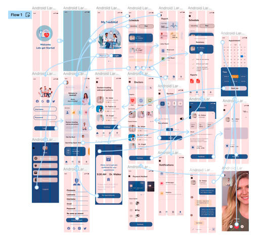 After ideating and drafting some paper wireframes, I created the initial designs for the MediAid app. These designs focused on delivering personalized guidance to users to help them find and book appointments with doctors.